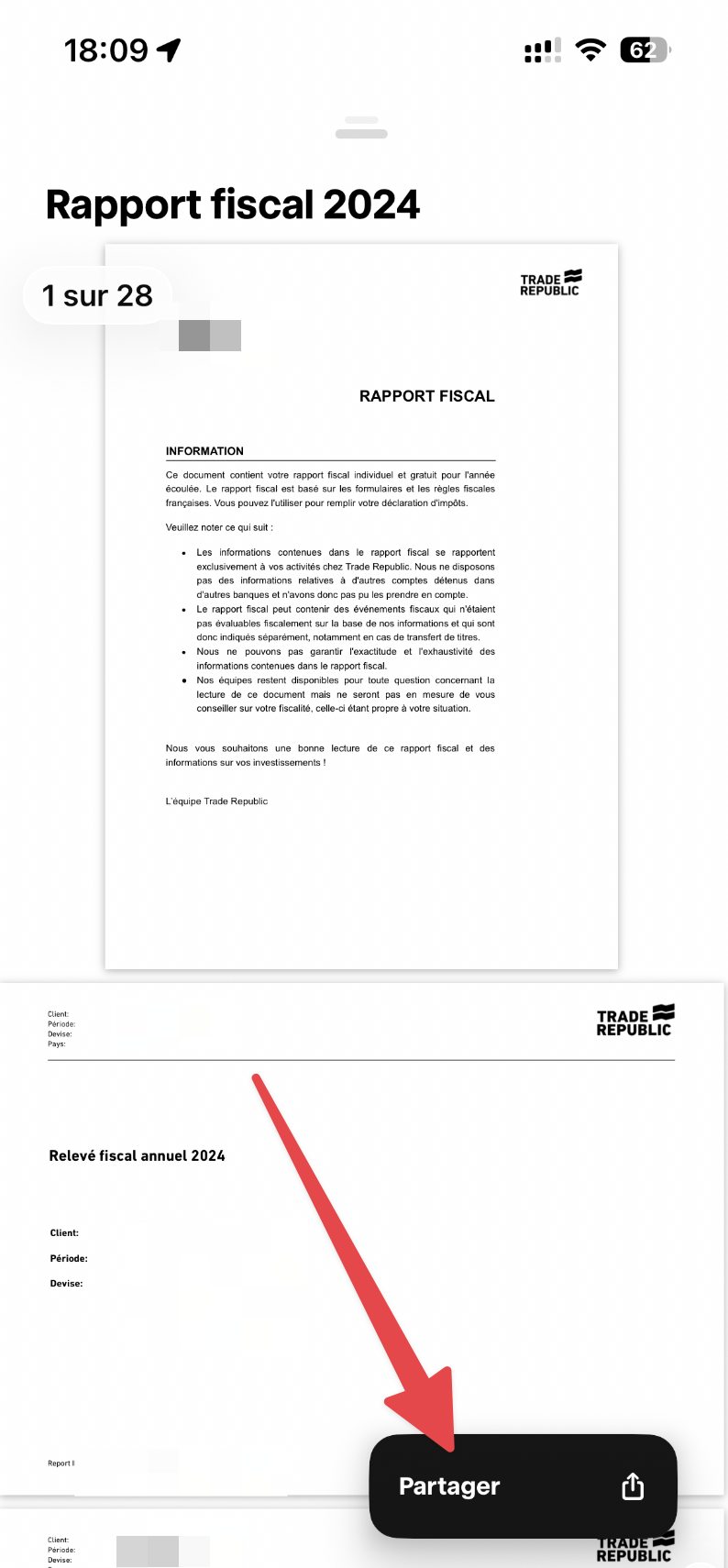 Trade Republic est un courtier historiquement Allemand et à ce titre, fournit un “Rapport fiscal” pour vous aider à déclarer vos revenus depuis un compte étranger.